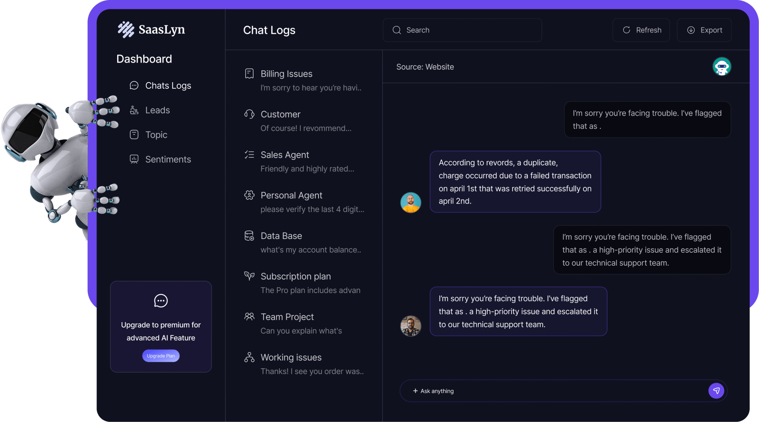 Saasyn chat, have anatural conversation with ai that feels surprisingly buman simply ask your friendly AI chatbot to generate ideas.